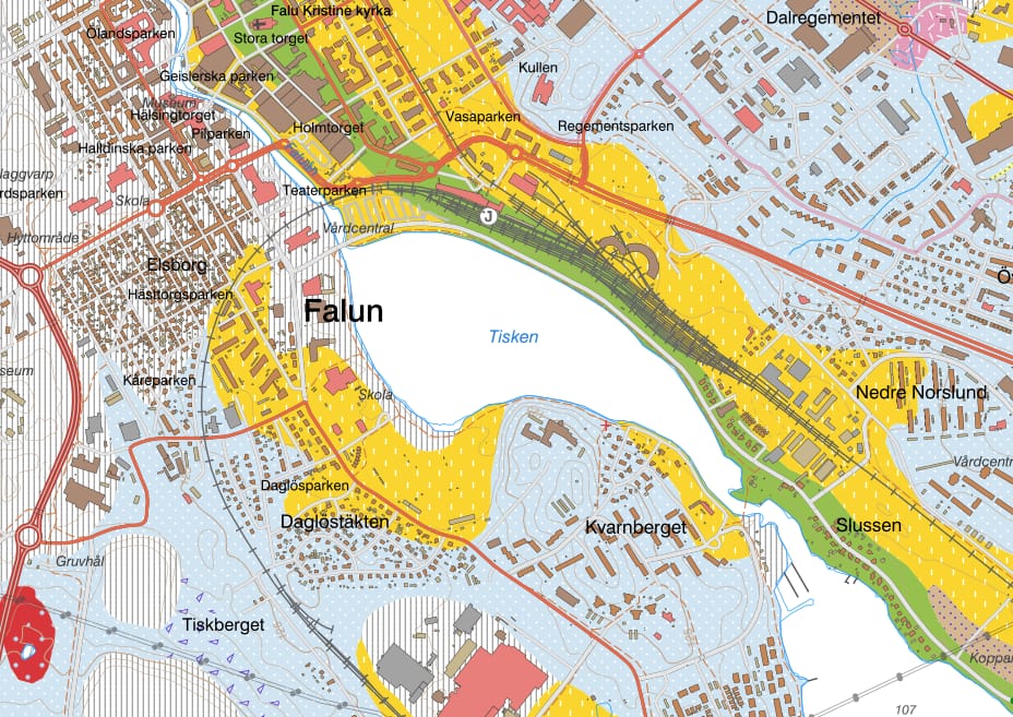 Jordartskarta över aktuellt område från SGU studeras tillsammans med arkivhandlingar från aktuellt och/eller närliggande område.